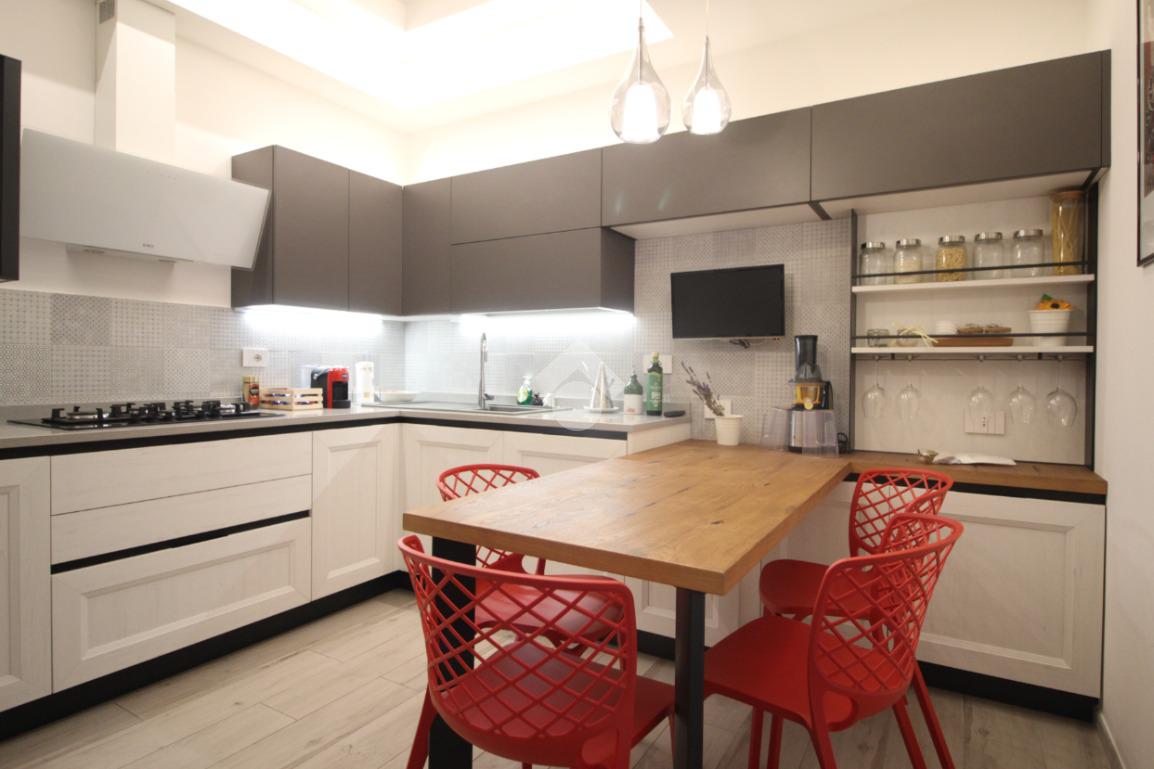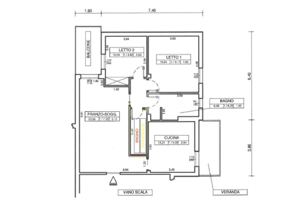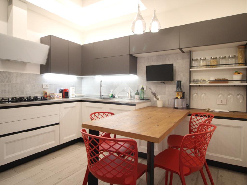 All'ingresso troviamo un'ampio e luminoso soggiorno con accesso al balcone e cucina abitabile, servita da veranda.