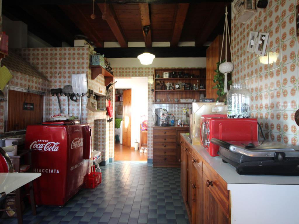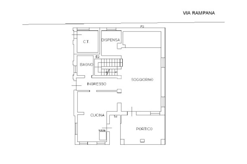Al piano terra troviamo la cucina abitabile, un ampio soggiorno con camino ed un bagno di servizio. Dal soggiorno si accede al portico con vista sulle colline ed il mare.