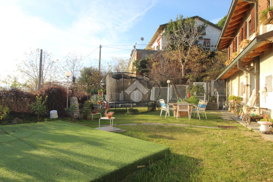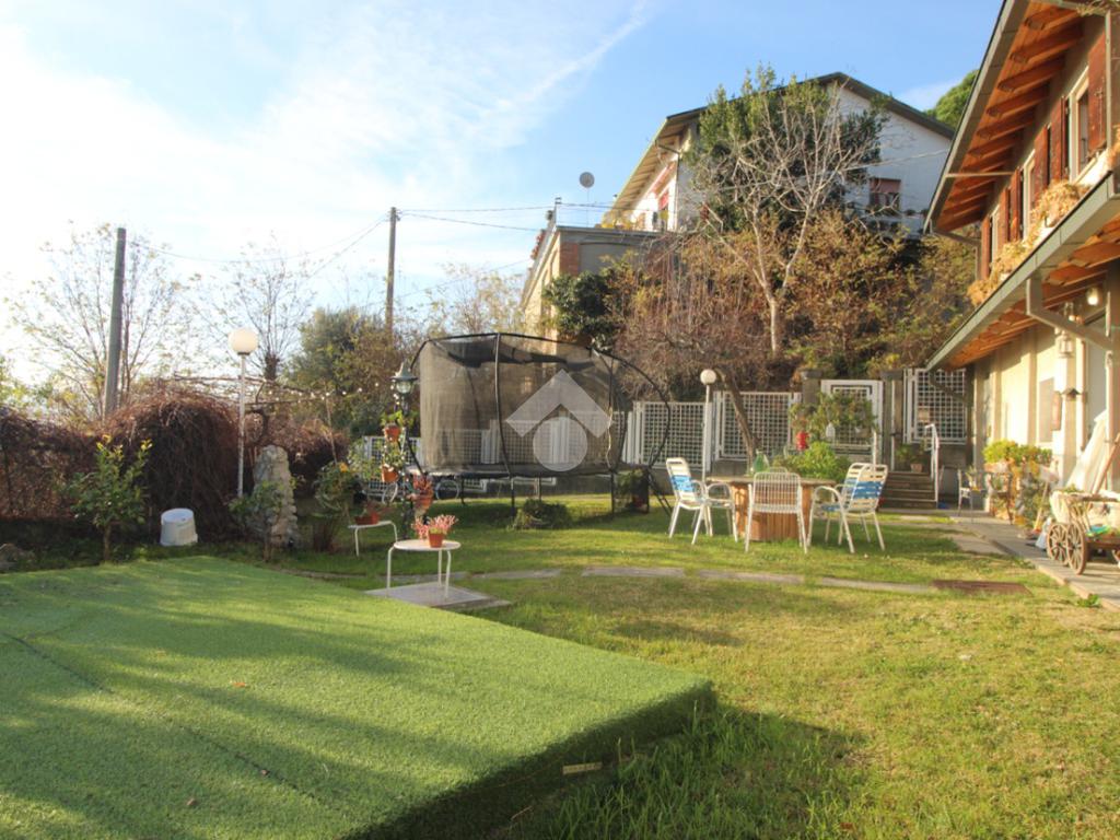 La casa è completamente circondata da giardino, fanno parte della proprietà il garage doppio e la cantina al piano interrato.